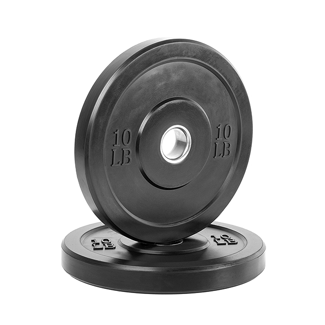 Cada placa de pára-choques tem um anel interno com um diâmetro de 2' e cabe em qualquer barra olímpica, barra de halteres ou trenó com um diâmetro de 2'.